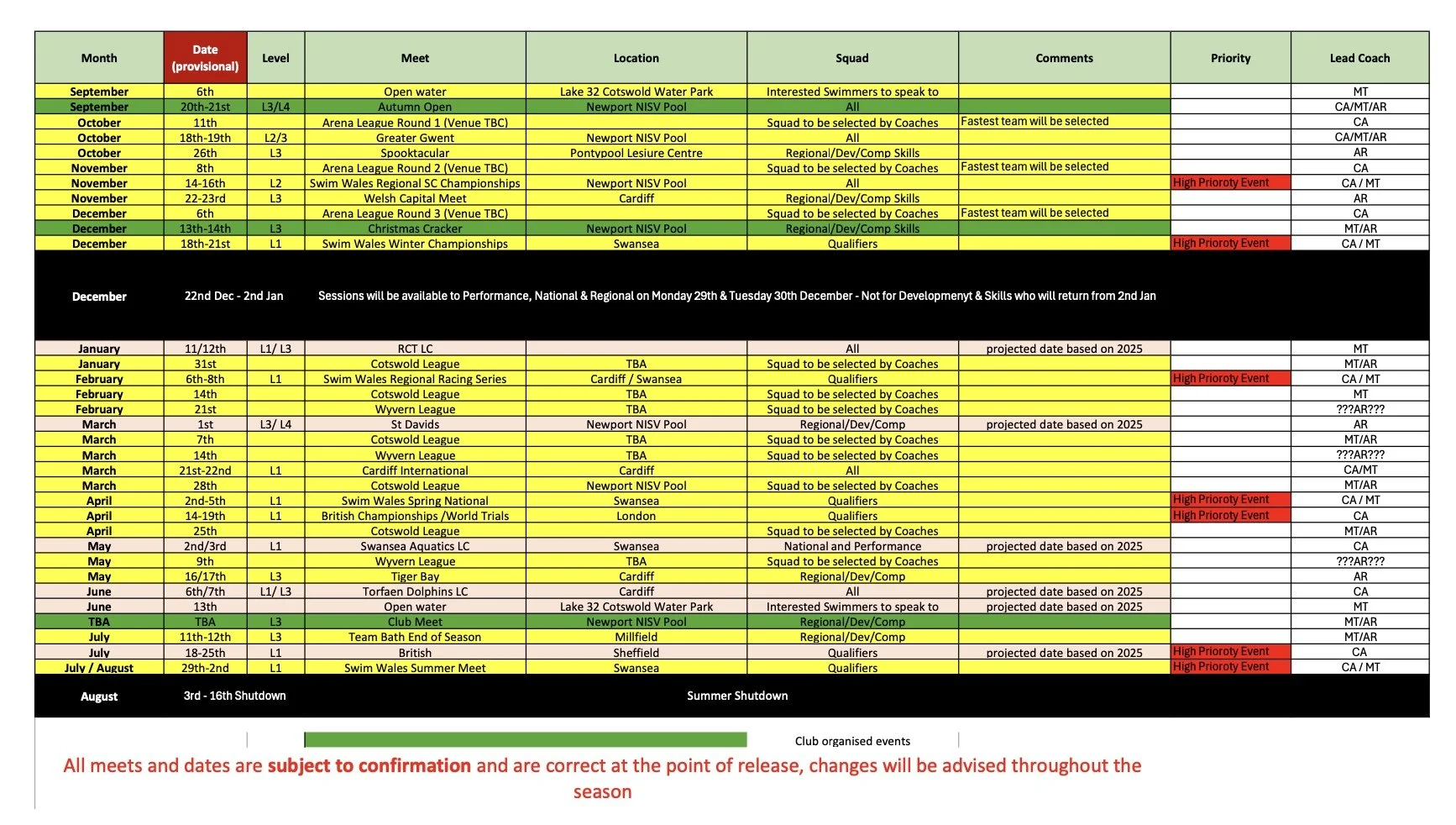 Please note that the calendar may be subject to change throughout the year. There are several dates in 2026 that are yet to be confirmed with the host, as we get these dates confirmed the date will change to be highlighted in yellow.
